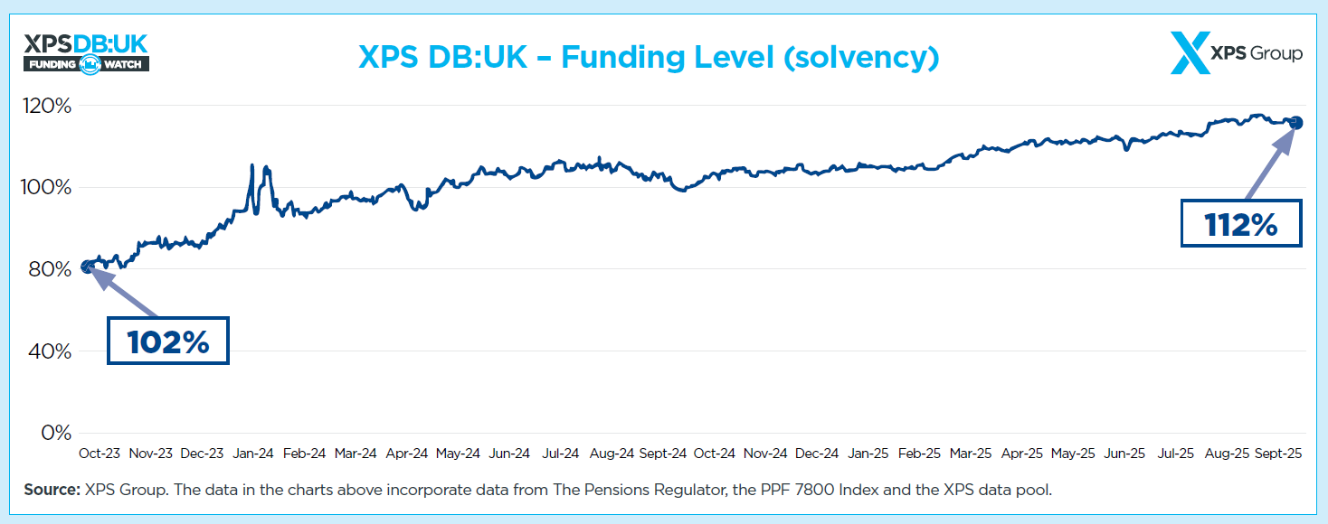 Rising gilt yields towards the year-end have improved aggregate funding levels from what were already at historically high levels. See XPS DB:UK Funding Tracker below.