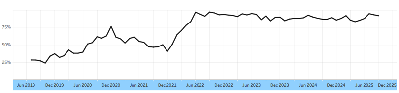 Transfer Values have dropped 6% since the start of the year. While overall values remain low, the Index has shown a period of greater stability, with month-end values fluctuating within a £5,000 range over the past six months.